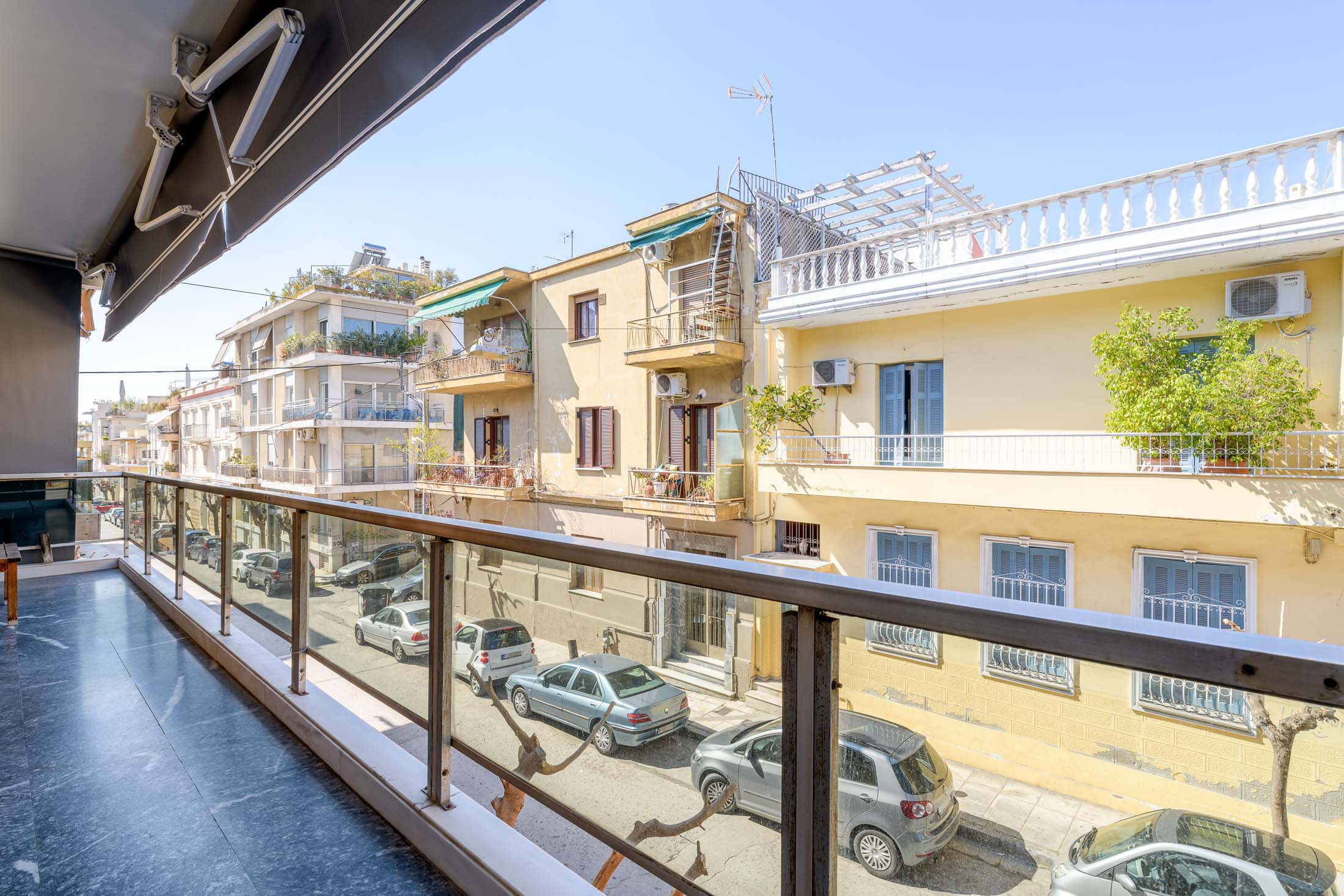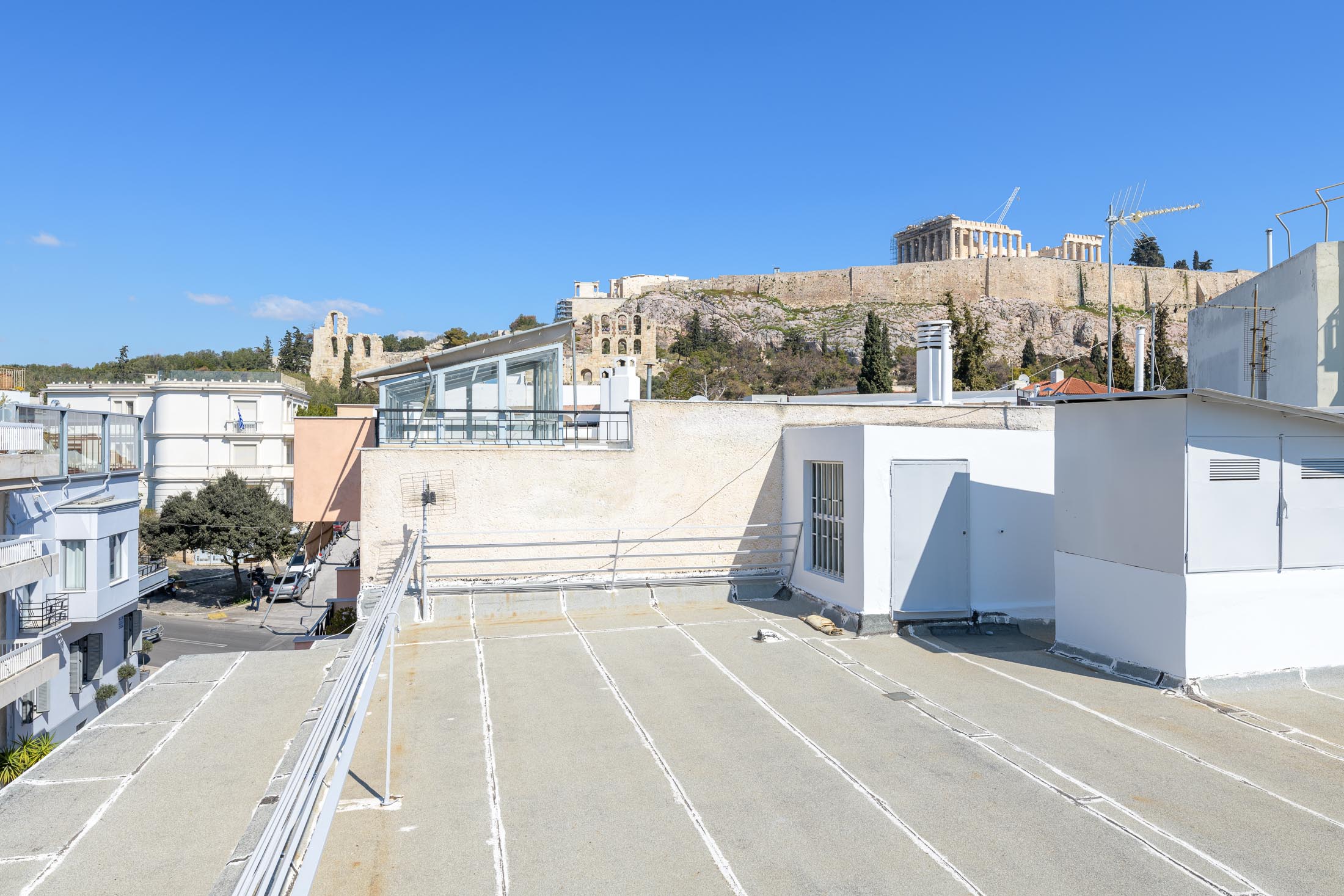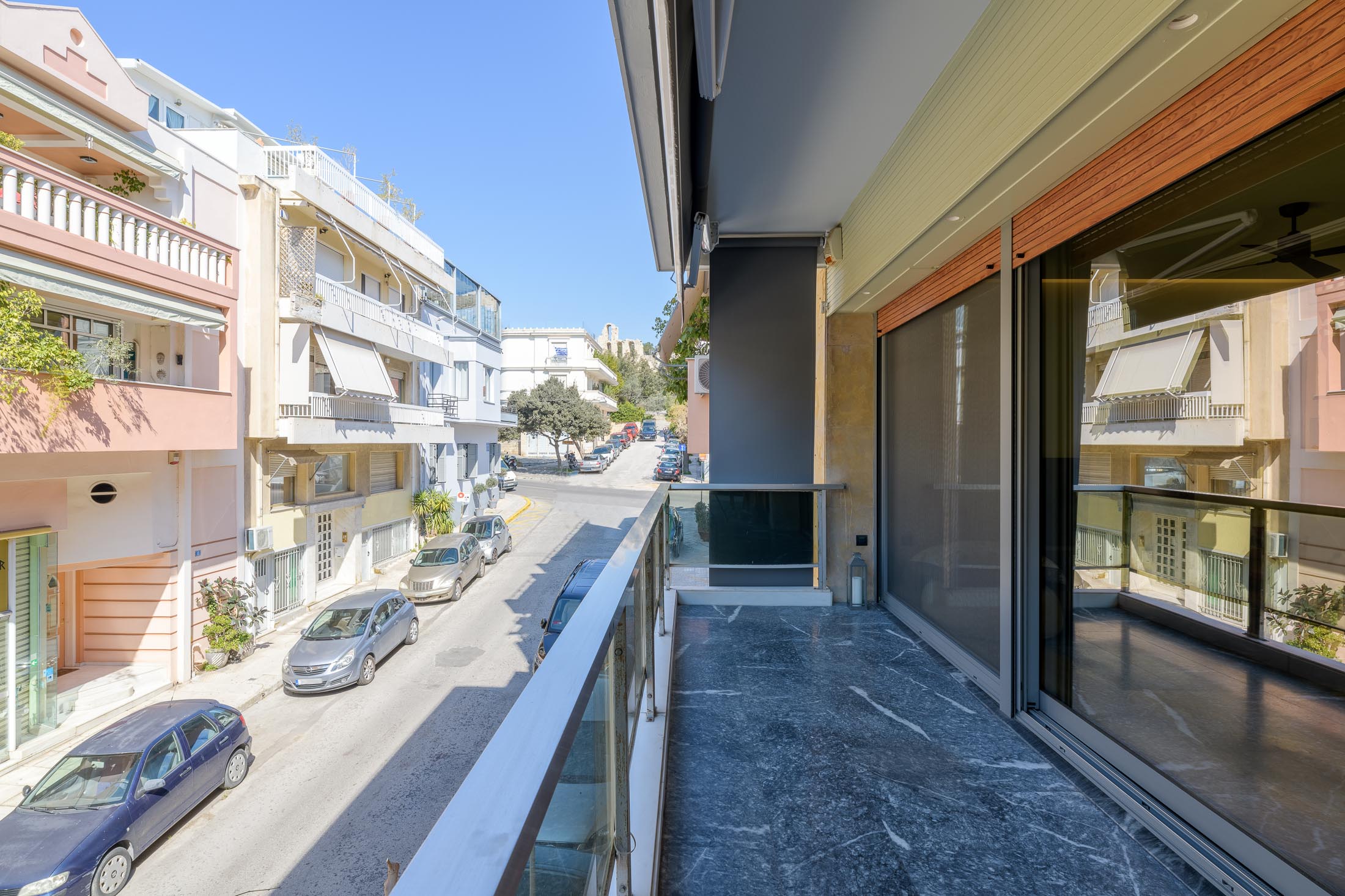 Σύγχρονο διαμέρισμα Εξαιρετικά ανακαινισμένο διαμέρισμα Α΄ ορόφου, 115 τ.μ., σε διπλοκατοικία του 1972 δίπλα στην Ακρόπολη. Διαθέτει μεγάλο ενιαίο χώρο υποδοχής και τραπεζαρίας που οδηγούν σε βεράντα, πλήρως εξοπλισμένη κουζίνα, δύο φωτεινά υπνοδωμάτια, ένα μπάνιο και WC ξένων. Το διαμέρισμα ανακαινίστηκε ριζικά το 2018 και διαθέτει όλες τις σύγχρονες ανέσεις. Η θέρμανση του είναι αυτόνομη με πετρέλαιο, έχει κλιματισμό και σύστημα συναγερμού. Επίσης έχει μία κλειστή θέση στάθμευσης στο ισόγειο και αποθήκη 10 τ.μ.. Από την καταπληκτική ταράτσα που έχει το κτήριο, αντιστοιχεί στο διαμέρισμα το 50% και μπορεί να γίνει χρήση και από τους δύο ιδιοκτήτες, του Α΄ και του Β΄ ορόφου. Σε αυτή την υπέροχη γειτονιά είναι πλεονέκτημα να μπορεί κανείς να χρησιμοποιεί την ταράτσα που έχει πολύ ωραία θέα στην Ακρόπολη.